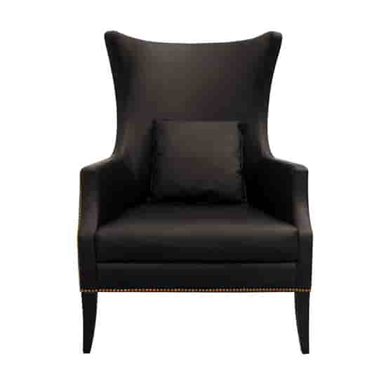 The Jordan Highback embodies an unpredictable strength. A antique bronze nailhead trim wraps around this high-back lounge chair, making it pop against the synthetic leather upholstery. Place it in modern home decor and watch the Jordan Highback armchair fill the room with its strong attitude. This piece also feature a lumbar pillow that aids the immersive, comfortable experience.
